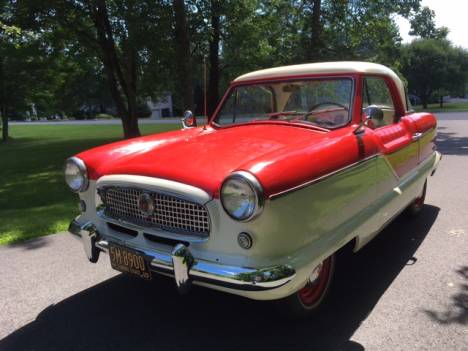 Its been called one of the 10 best collectible cars ever, with it's diminutive size, clown-car looks, and Fifties-style two-tone paint -- it could only be the Nash Metropolitan! Designed in Wisconsin and built in England, the "Met" was one of America's first subcompact cars. More than that, it helped to transform Nash Motors into the American Motors Corporation (AMC). Much like the modern smart fortwo, the Nash Metropolitan still has a strong cult following. Thanks to its adorable styling and admirable frugality, the Metropolitan was more successful as a conversation piece and fashion statement than as practical transportation. Still, it was America's first successful subcompact car. This was their series IV model Metropolitan and this particular car was built between May and June of 1960. The "Metropolitan's staying power and its never-ending cuteness" have earned it "a place among the Greatest Cars of All Time" in the opinion of automotive writer Jack Nerad, a former editor of Motor Trend magazine. Notable people who own or have owned metropolitan's are Jimmy Buffett, Bridget Fonda, Greg Gutfeld, Steve Jobs, Princess Margaret, Paul Newman, Elvis Presley, Graham Stark and "Weird" Al Yankovic. This car is a 1961, which was the last year for the Metropolitan with only 853 shipped to the US and 116 sent to Canada making the total shipped 969. The engine is a 1500cc, 4 cylinder capable of getting 39mpg at moderate speeds. The transmission is a 3 speed standard column shifter. It is equipped with a working original AM radio and "weather eye" heater. It even has it's original NY license plates which can be used on the road and are included with the sale of the car ($24 a year to renew). Note: In 1961 they used 1960 plates with a "61" tab covering the "60"on the rear plate only. Insurance is only costing me $43 a year through Haggerty classic insurance- with full coverage! It has just passed the NYS inspection with no problem. All fluids have been changed and are at proper levels. There is no rust on this car because it was in an indoor heated location for many years. The undercarriage has been carefully cleaned and heavily coated with a truck bed liner coating which will keep it rust free for many years to come. Everything is original and in working condition. Runs, drives and brakes well. Carpets and seats are in excellent condition. All 5 tires have excellent matching tread. The grille surround moldings, front and rear bumpers (with guards) are brand new. All locks work. Parts are readily available for this car from several good sources should you ever need any in the future. Price $14,500 For information please call five one eight seven five eight nine one six three 518-758-9163